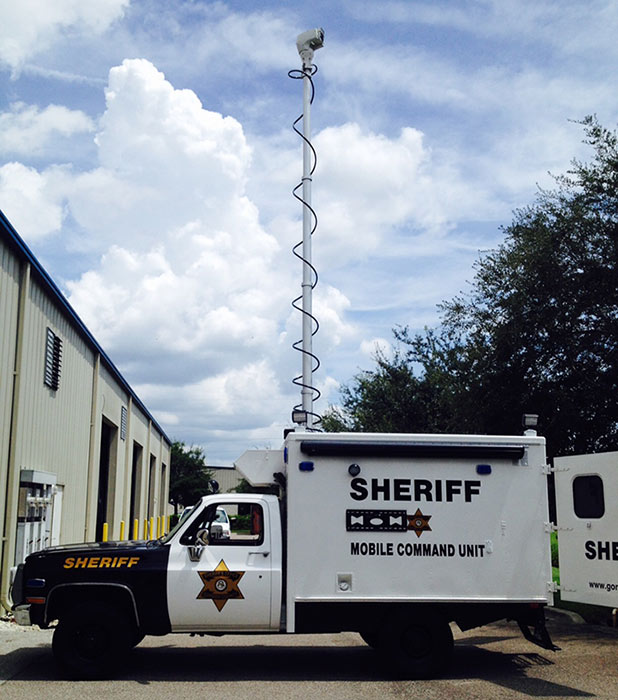 These telescopic masts boast a sturdy base diameter of 9″, operating pneumatically with the aid of custom-built air compressors, ensuring smooth and efficient deployment.